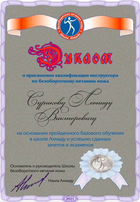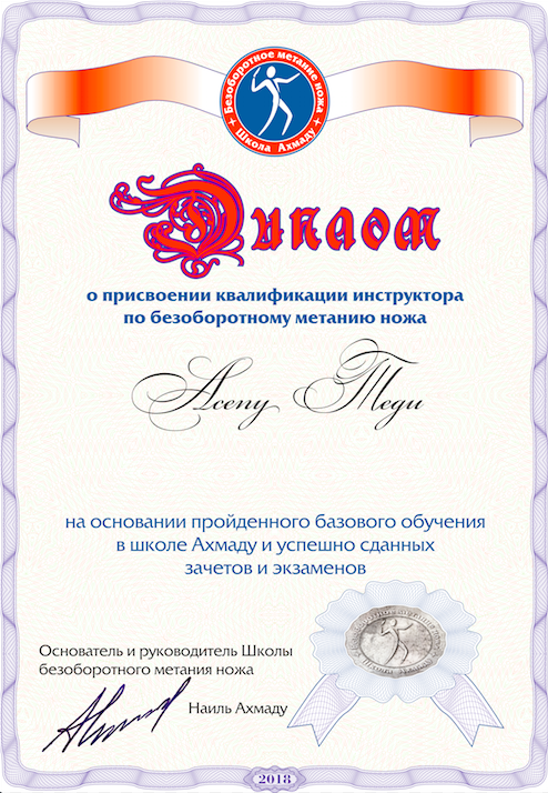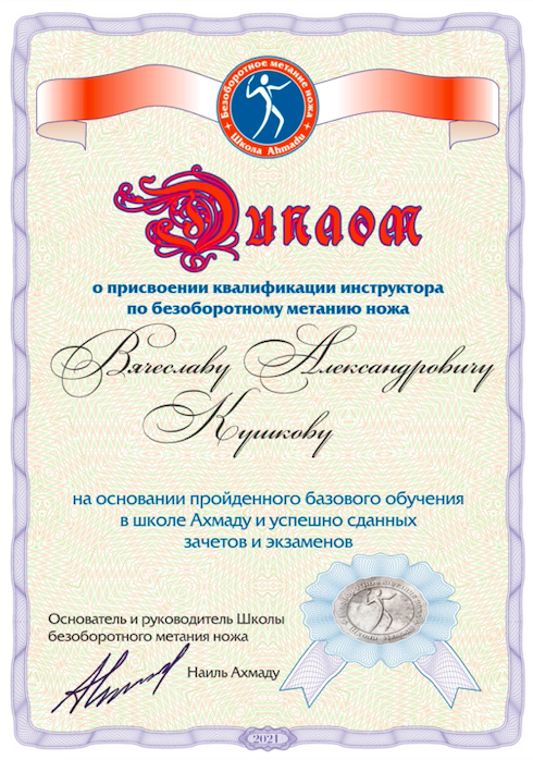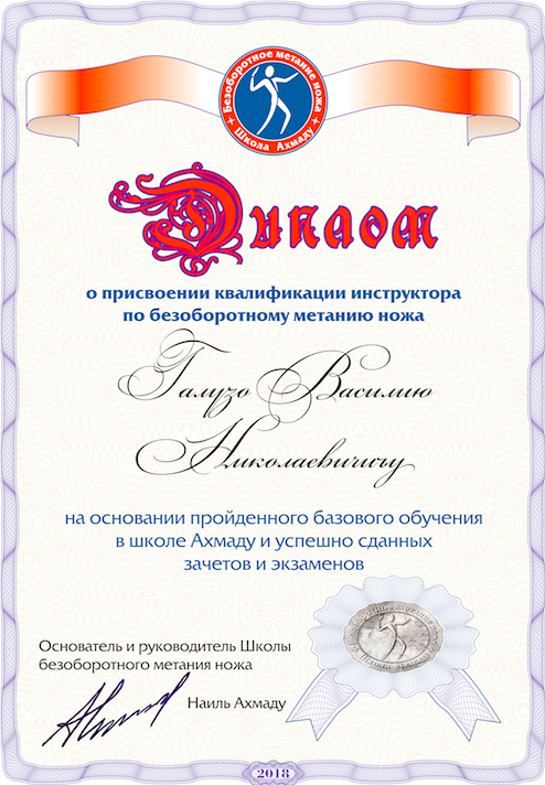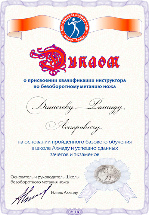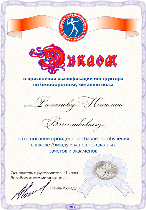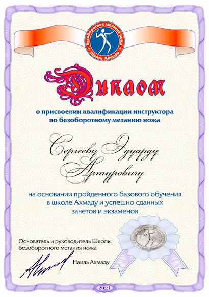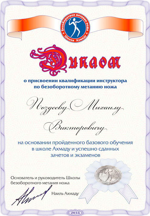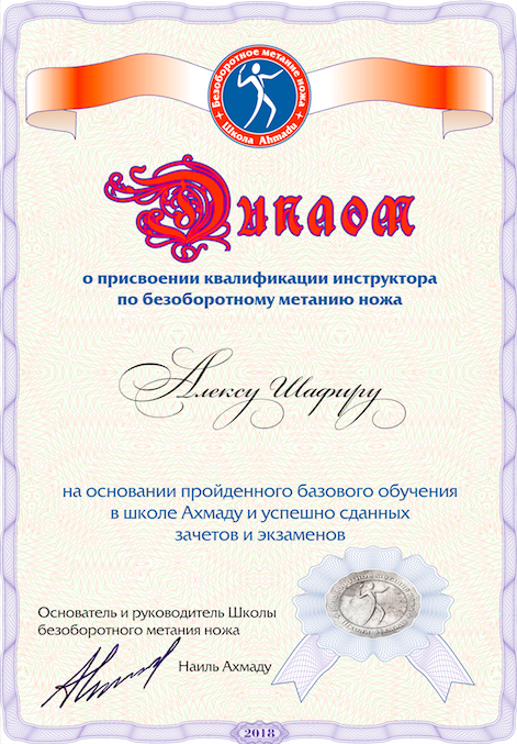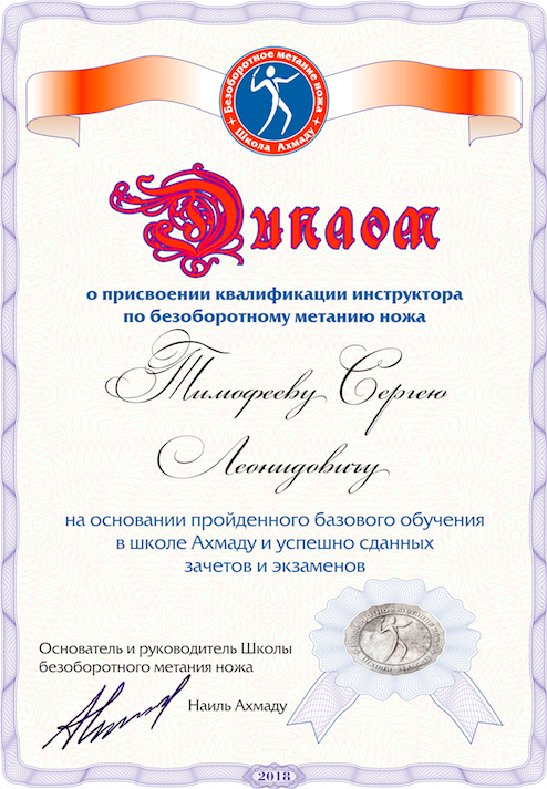 Инструктор по безоборотному метанию ножа.
